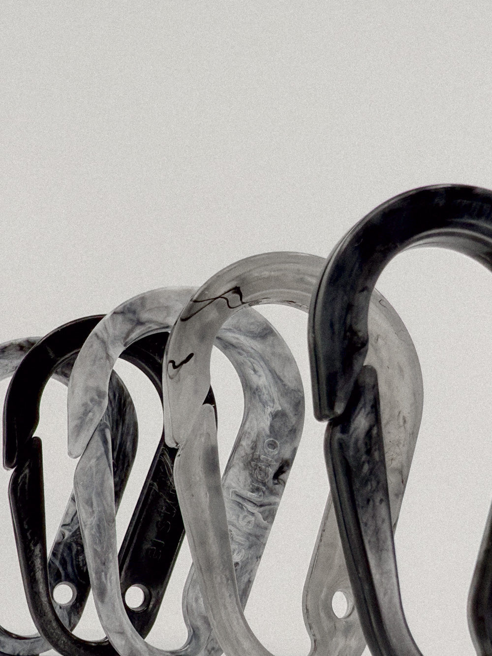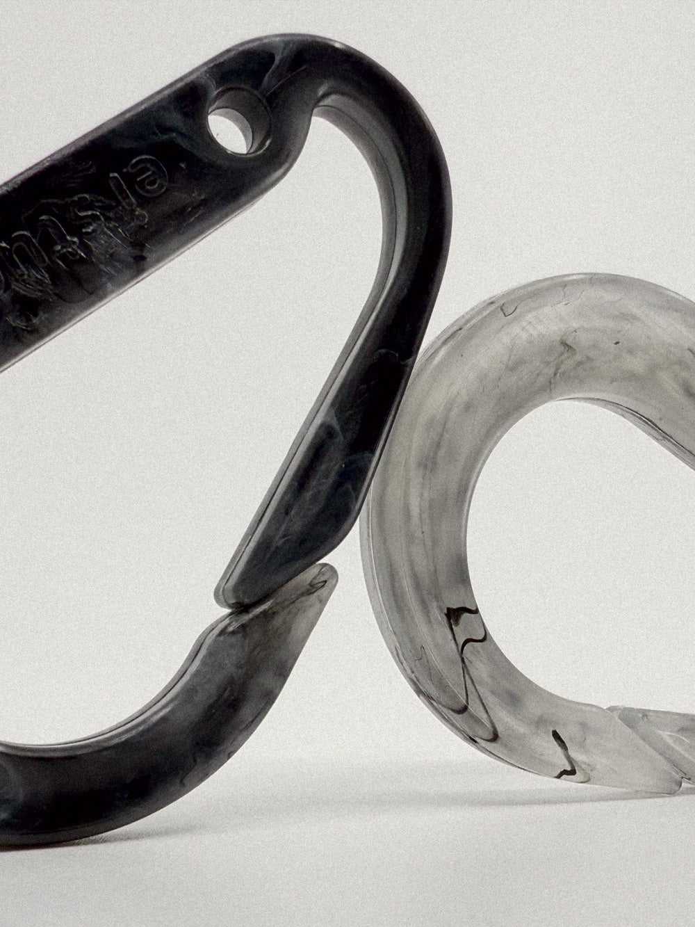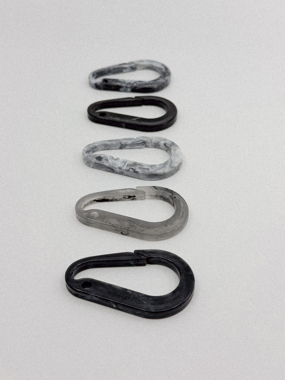 made from something once thrown away. this 5.5g carabiner is crafted entirely from recycled pp—formerly single-use plastic, now reshaped to carry with care. lightweight and minimal, each one holds up to 3.5kg, balancing strength with a barely-there feel. available in five signature ei studio colors—crescent, gibbous, graphite, marquina, and pacific—each piece features soft matte textures and unique swirls that speak to its past life. whether it’s holding your keys, charms, or pouch, it’s a small act with lasting meaning. a reminder that materials can live again, if we choose to let them.