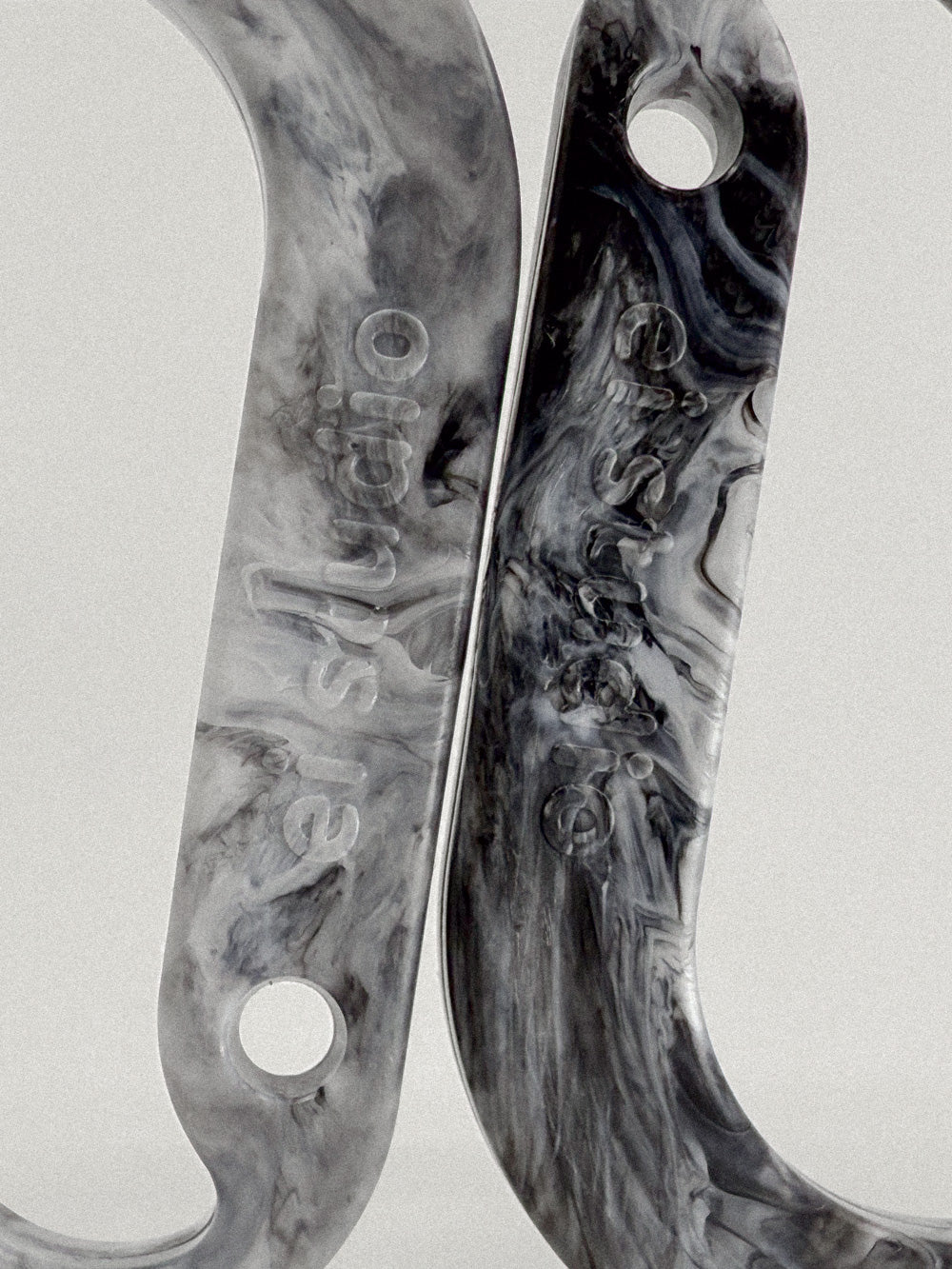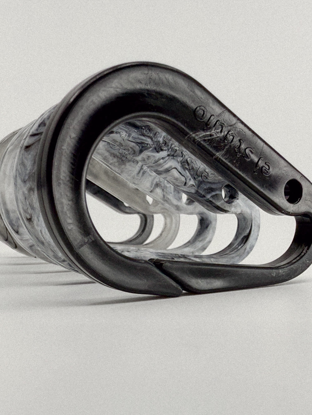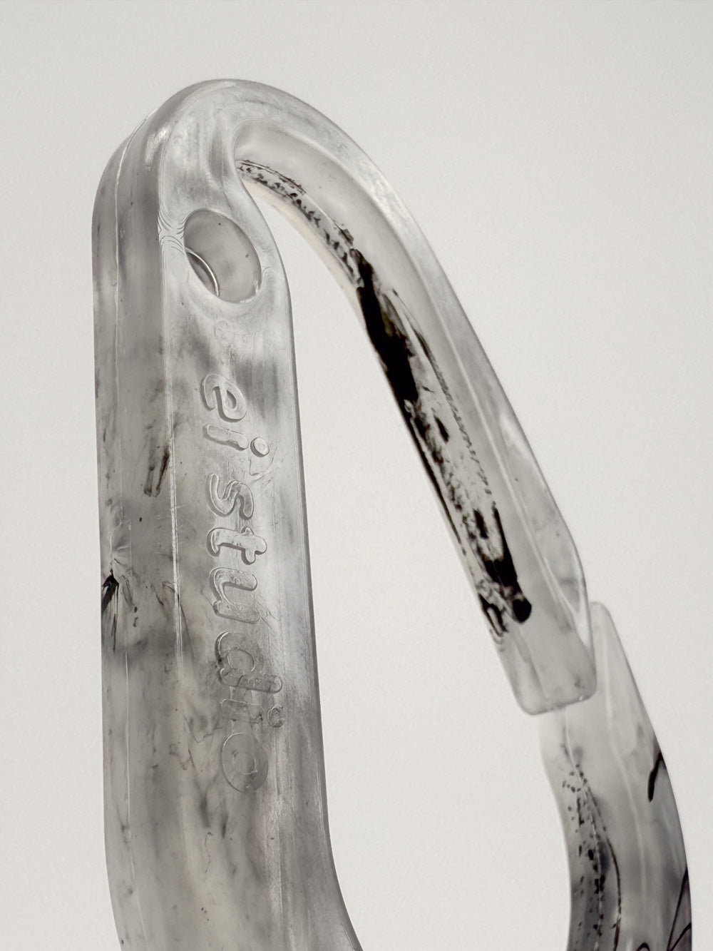made from something once thrown away. this 5.5g carabiner is crafted entirely from recycled pp—formerly single-use plastic, now reshaped to carry with care. lightweight and minimal, each one holds up to 3.5kg, balancing strength with a barely-there feel. available in five signature ei studio colors—crescent, gibbous, graphite, marquina, and pacific—each piece features soft matte textures and unique swirls that speak to its past life. whether it’s holding your keys, charms, or pouch, it’s a small act with lasting meaning. a reminder that materials can live again, if we choose to let them.