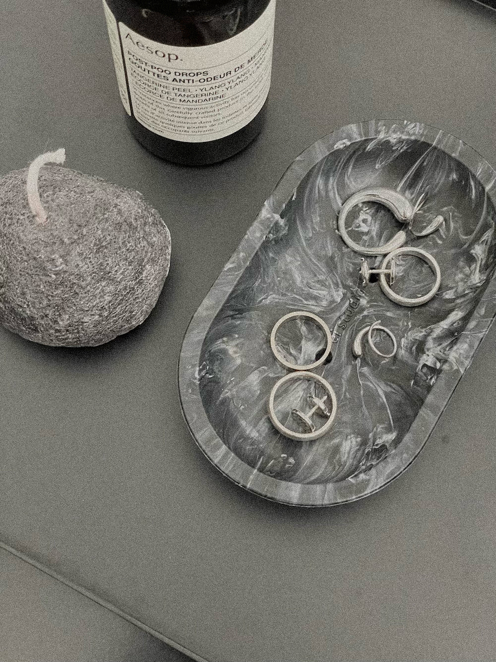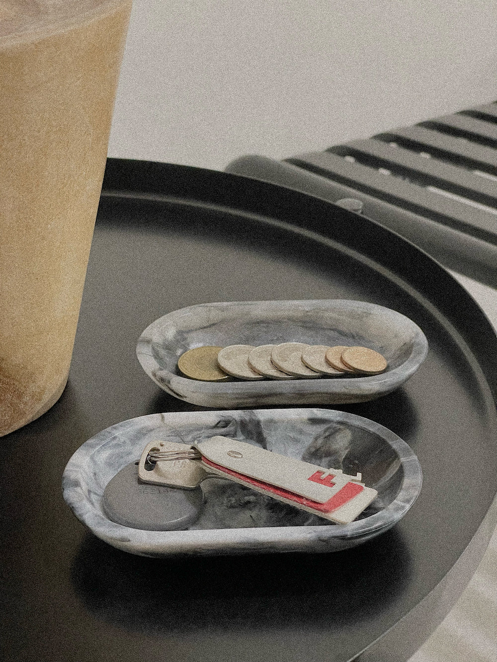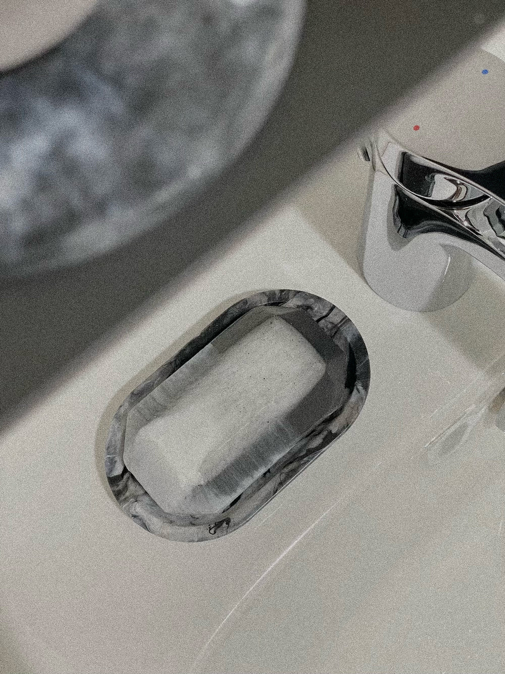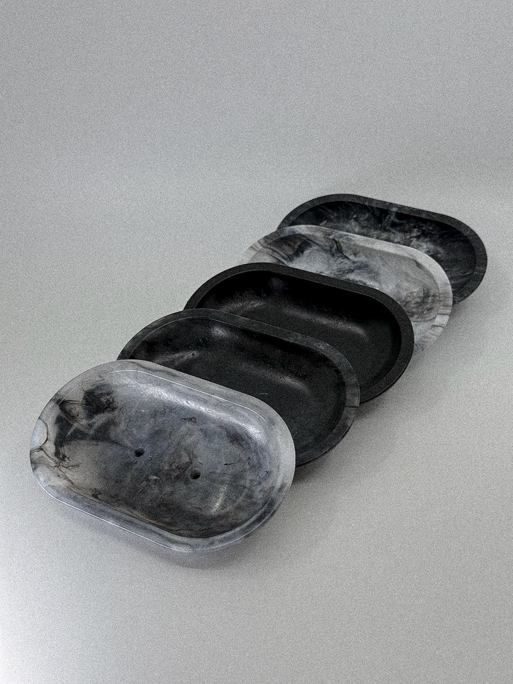 the soap dish is crafted from 60g of recycled single-use cutlery and takeaway food containers. made entirely from type 5 pp plastics collected across taiwan, it reflects our commitment to circularity. this dish transcends its function as a simple accessory, serving not only as a soap holder but also as a tray for jewelry, keys, or even as a base for crystals and diffusers, embodying our circular design philosophy by transforming regenerative materials into something purposeful.