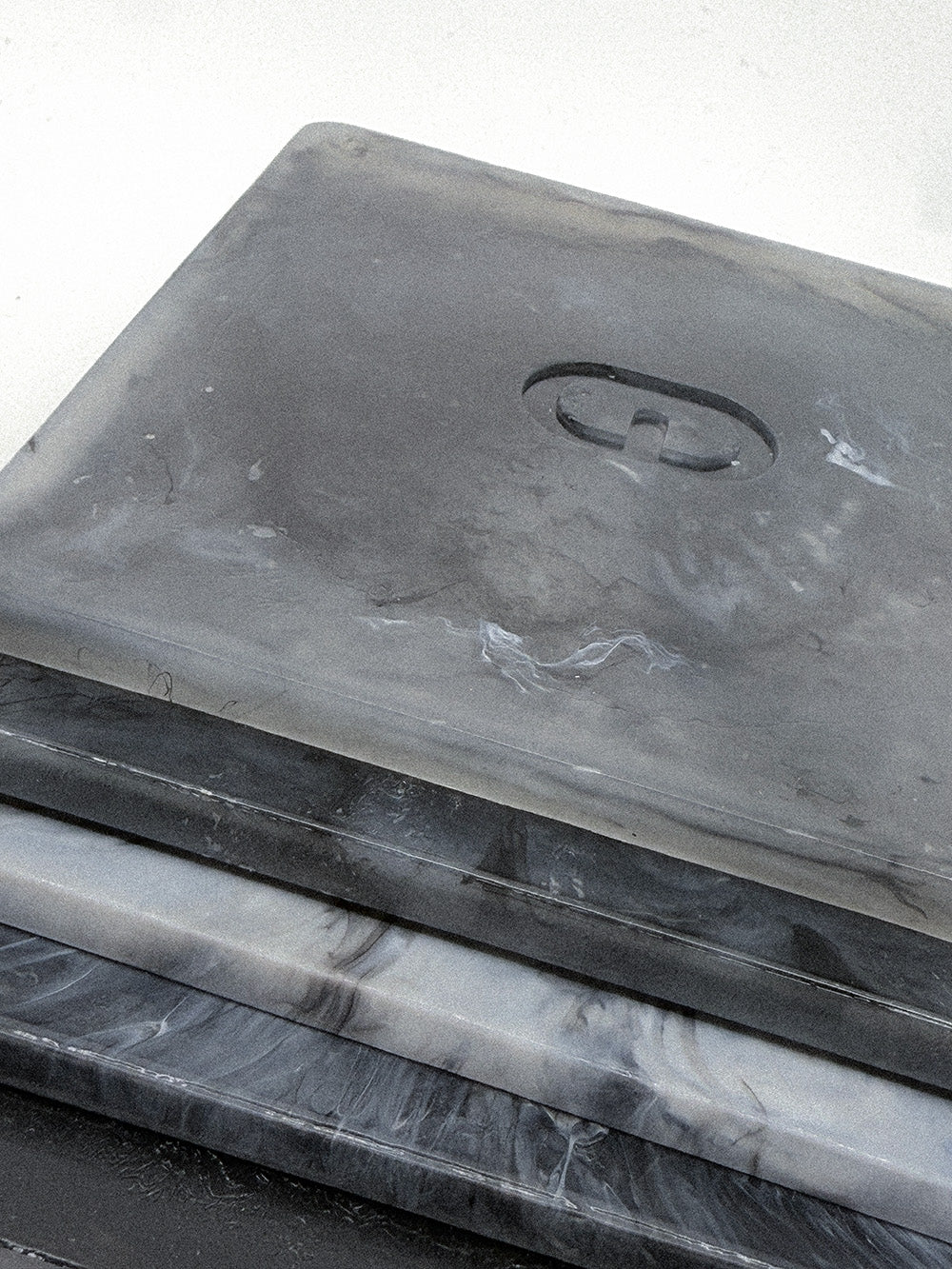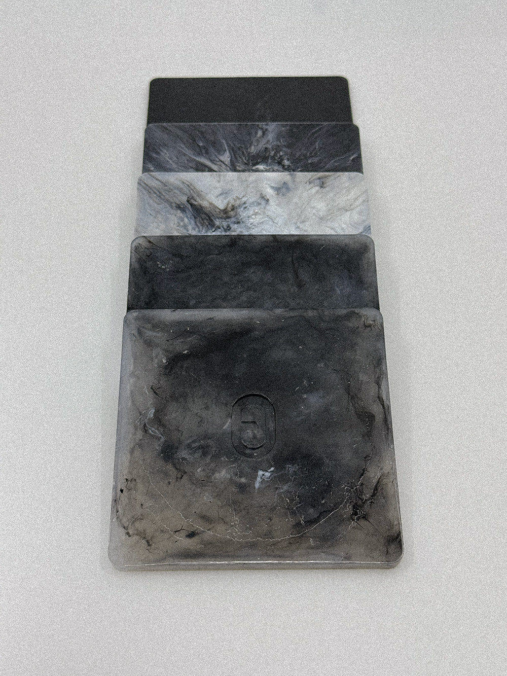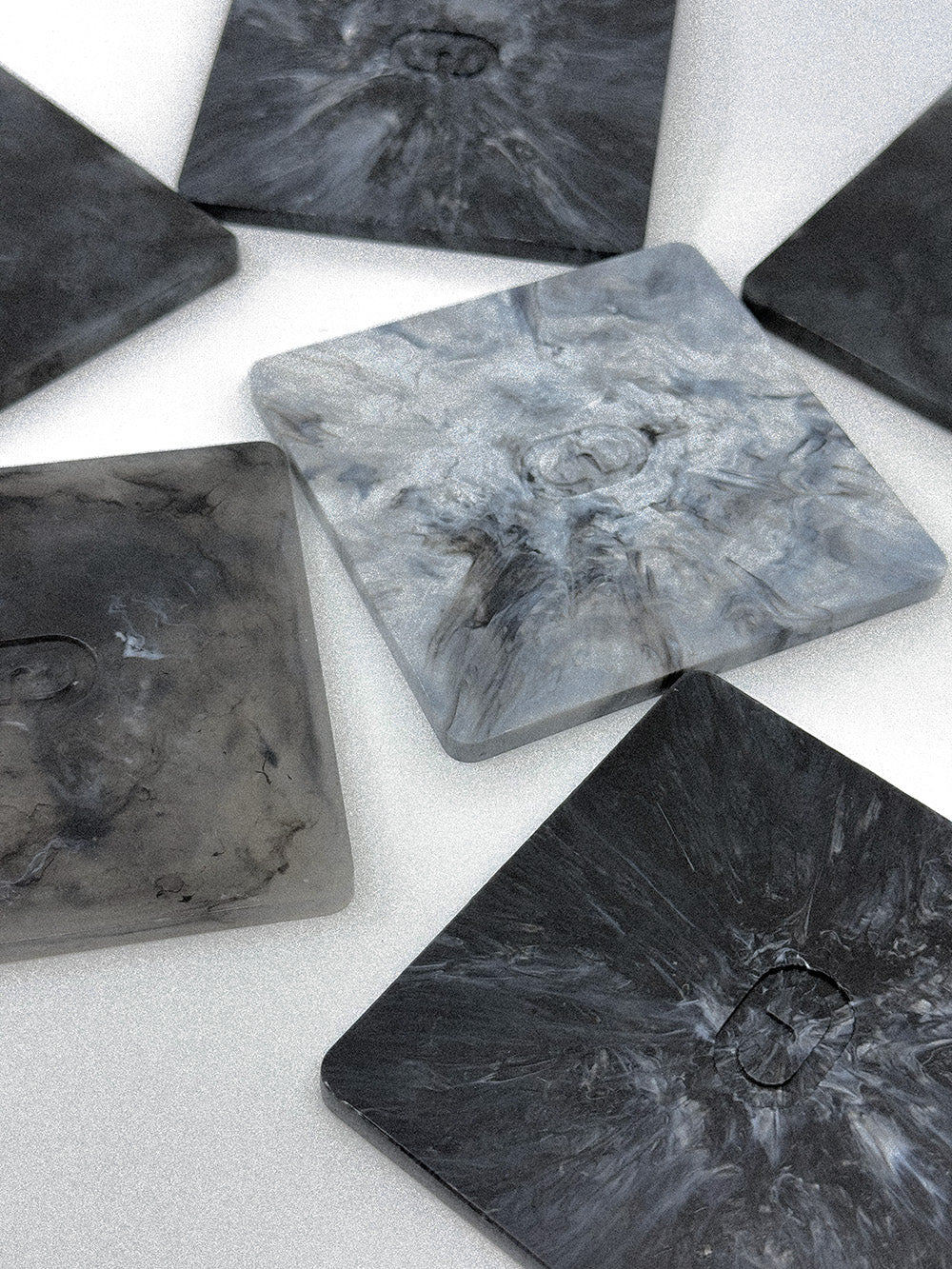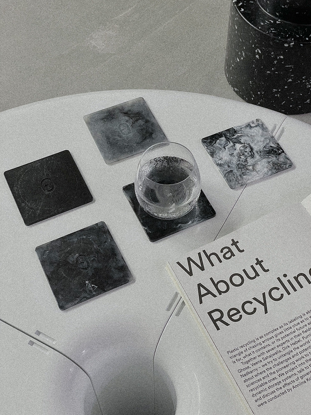 our 100% recycled pp square coasters are thoughtfully crafted from 50g of recycled single-use plastics, embodying sustainability and timeless design. with their sleek, angular form and available in five nature-inspired hues, they offer a refined yet functional addition to your space. the expanded surface showcases mesmerizing, organic patterns formed during the plastic extrusion process, making each piece uniquely captivating.