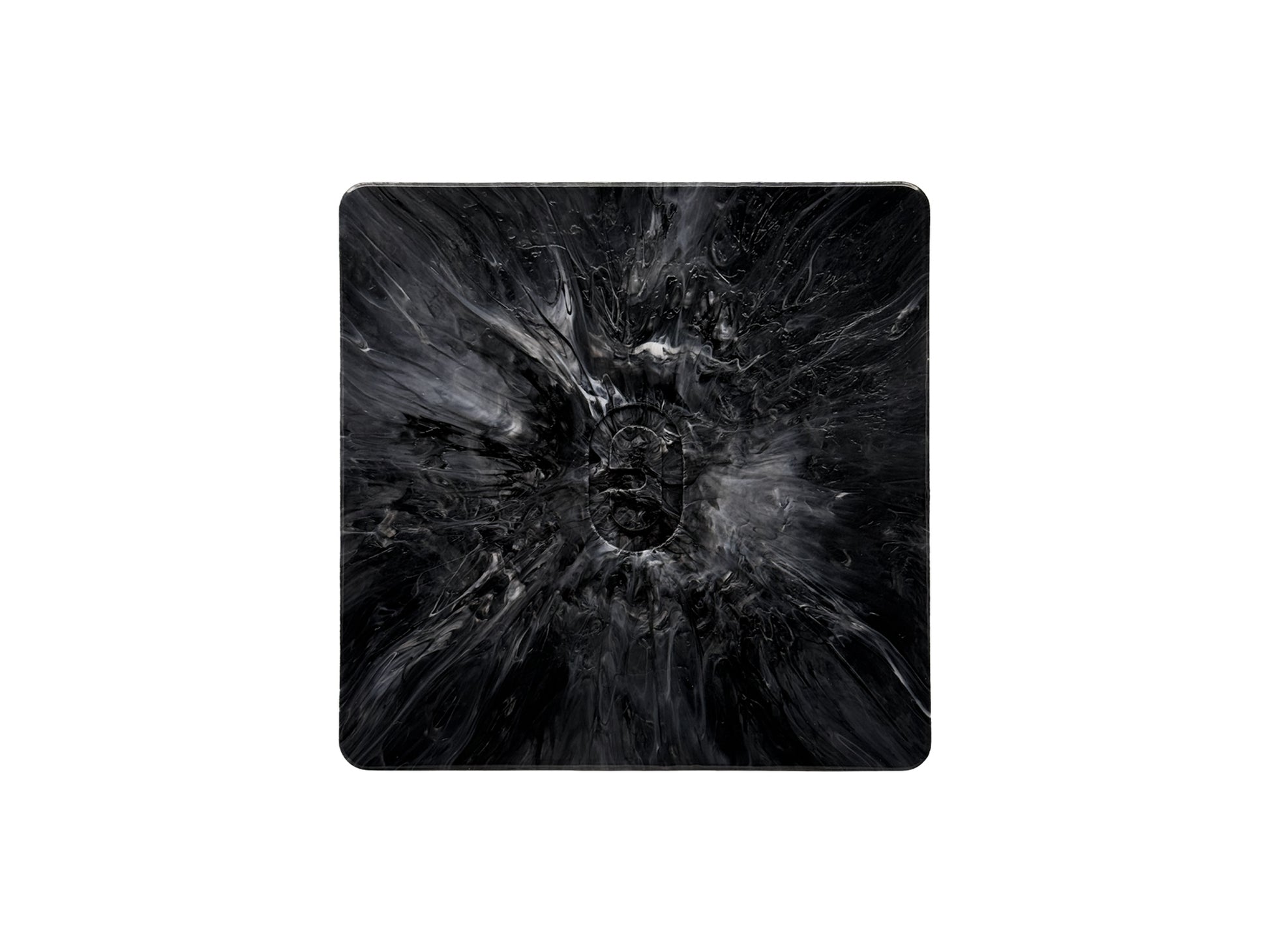 - gibbous: a dramatic dance of bold black swirls against a glassy backdrop, mimicking the moon’s rise.